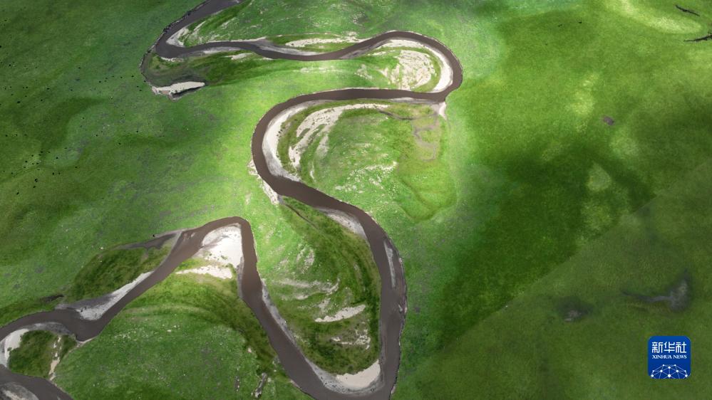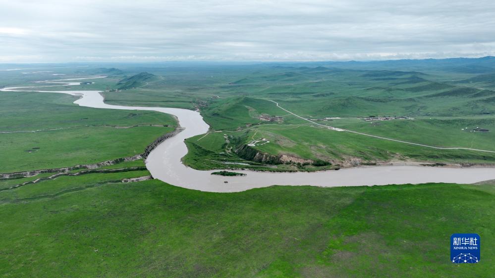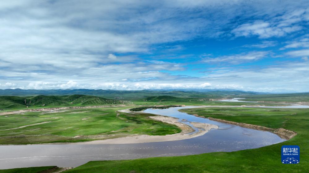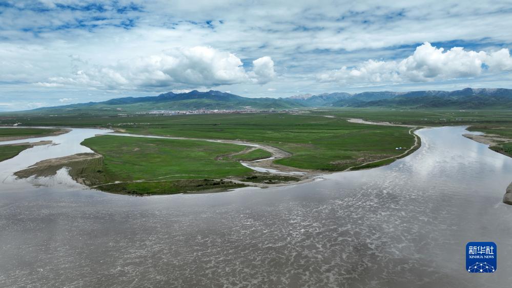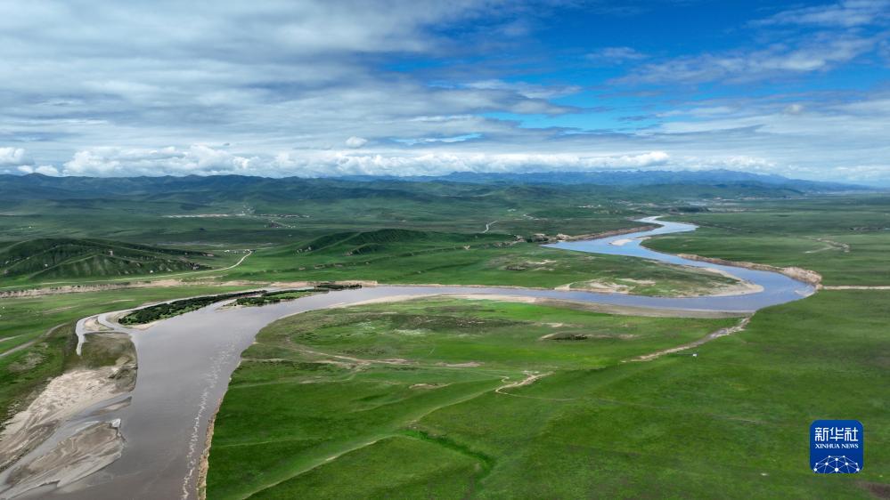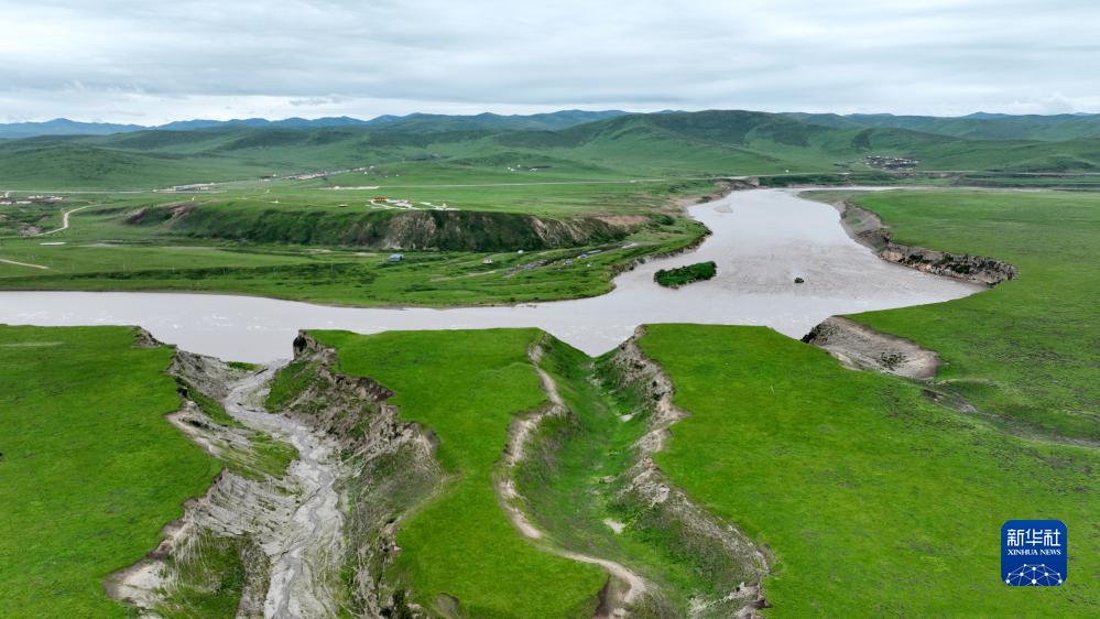 黄河流经甘南藏族自治州玛曲县境内(7月6日摄,无人机照片)。