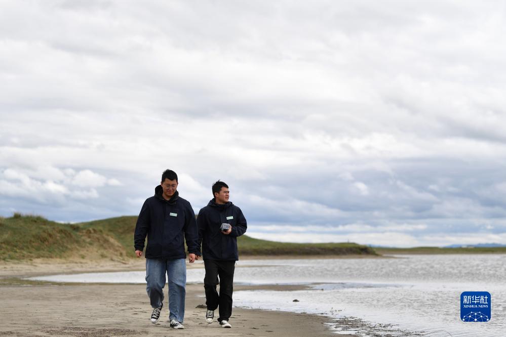在甘南藏族自治州玛曲县,甘肃黄河首曲国家级自然保护区管护中心曼日玛保护站工作人员王佳阳(左)和同事在保护区内巡护(7月5日摄)。