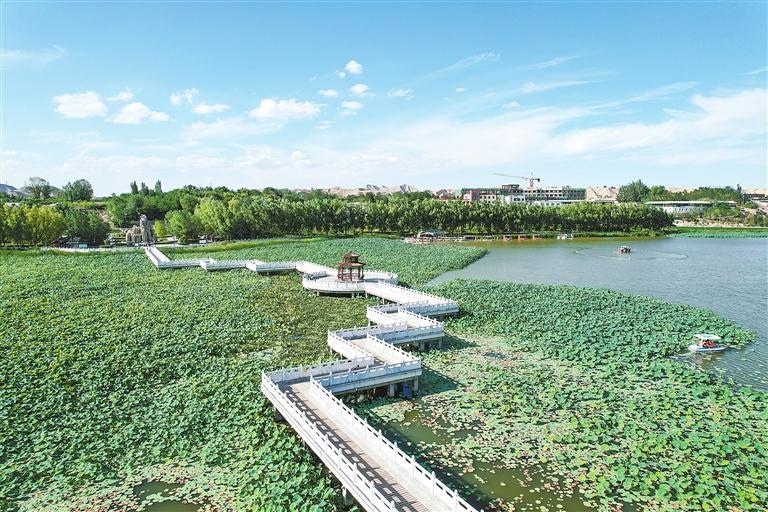 “我们依托丰富的生态资源和深厚的康养积淀,积极探索湿地环境治理与有机产业、生态康养等业态的结合,发展湿地生态惠民产业,进一步促进生产、生活、生态深度融合,2020年底湿地公园被评为国家4A级旅游景区,成为兰白知名康养度假休闲旅游目的地之一。”郝杰说。