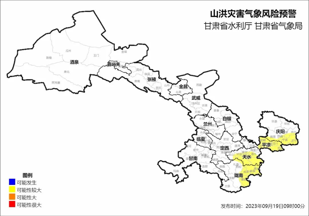 甘肃省两部门19日联合发布山洪灾害气象风险黄色预警
