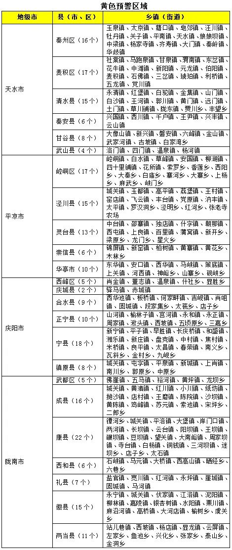 甘肃省水利厅、甘肃省气象局于2023年09月19日09时联合发布山洪灾害气象风险黄色预警:过去12小时,天水、平凉市东部、庆阳市中部和南部、陇南市东部等地区局地已出现暴雨。预计,09月19日09时~09月19日20时天水市秦州区、麦积区、清水县、秦安县、甘谷县、武山县,陇南市武都区、成县、康县、西和县、礼县、徽县、两当县,平凉市崆峒区、泾川县、灵台县、崇信县、华亭市,庆阳市西峰区、庆城县、合水县、正宁县、宁县、镇原县等地区降水持续,累积雨量可达40~60毫米,最大小时雨强可达15~25毫米,发生山洪灾害可能性较大(黄色预警);其他地区也可能因局地短历时强降水引发山洪灾害,请相关部门注意做好实时监测、防汛预警和提请危险区人员转移避险等防范工作,社会公众注意防灾避险。