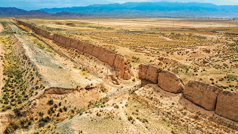 回望历史,为保障丝路畅通和西北边陲长治久安,汉、明等王朝因地制宜,修筑起绵延数千千米烽燧相连、墩台和关城相互守望的长城建筑体系。