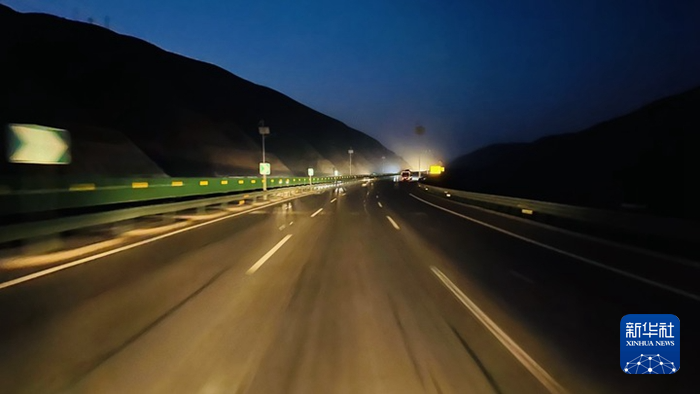 记者在前往榆中的邮政货车上拍摄的道路情况。新华社记者李杰 摄