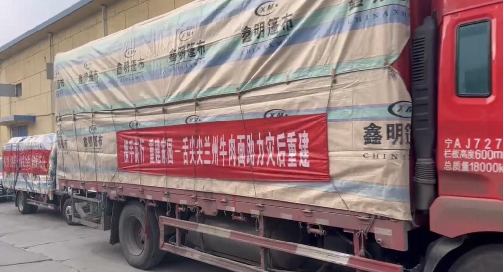 企业为地震灾区群众捐赠速食兰州牛肉面。新华社发(王旭摄)