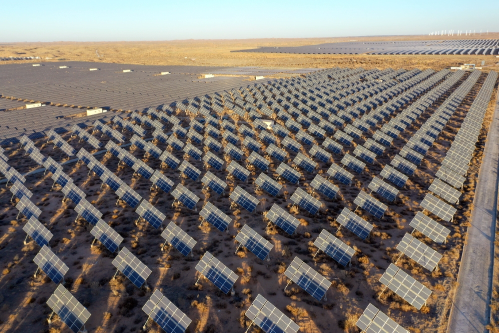 2023年12月,古浪北部沙区的光伏发电项目。新华社记者 郭刚 摄