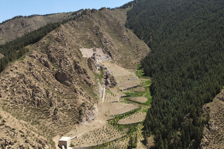 这是在金昌市永昌县境内的祁连山国家级自然保护区焦家庄夹道二沟拍摄的萤石矿矿点生态修复情况。新华每日电讯记者张智敏摄