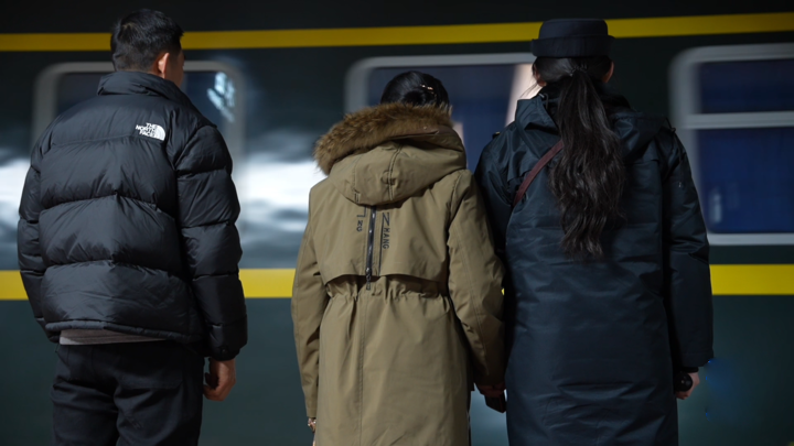 14号车厢内,来自黑龙江省齐齐哈尔市泰来县的王兴海和陈玉倩望着车窗外、站台上的王靓怡,喜笑颜开。跨越2700多公里、历时52个小时,只为给女儿一个惊喜,陪她在岗过年。