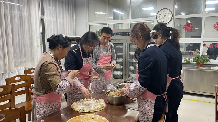 18时许,他们邀请王靓怡一家人以及与她同批入职的吕非凡、王悦、姜红南等3名东北女孩,来到车站食堂包饺子。
