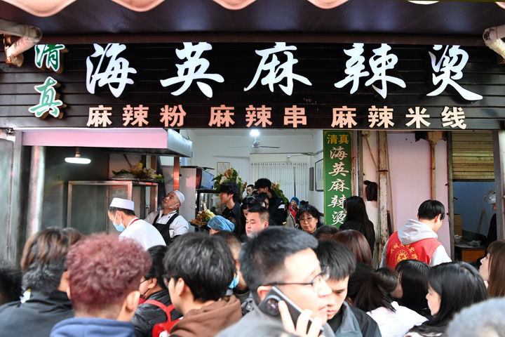“开了26年店,来的都是从小吃到大的本地人,像现在这样一天接待七八百位外地客人还是破天荒。”海英麻辣烫老板娘哈海英说,年后,顾客量开始呈三四倍增长,队伍从清晨6点排到晚上9点,她动员全家人帮忙,自己也像被绑在店里,“累并快乐着”。