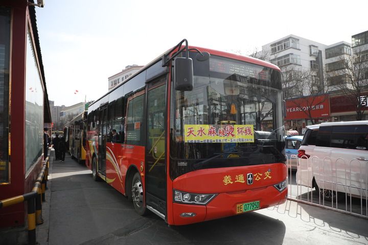 3月19日,在位于甘肃省天水市的天水南站,游客乘坐“天水麻辣烫”专线前往市区。新华每日电讯记者 马希平 摄