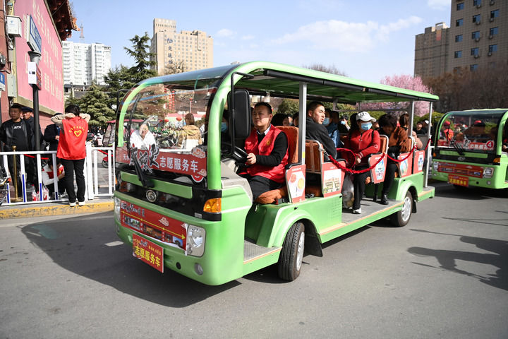 3月19日,在天水市秦州区,志愿者驾驶天水麻辣烫志愿服务车免费转运游客。新华每日电讯记者 范培珅 摄