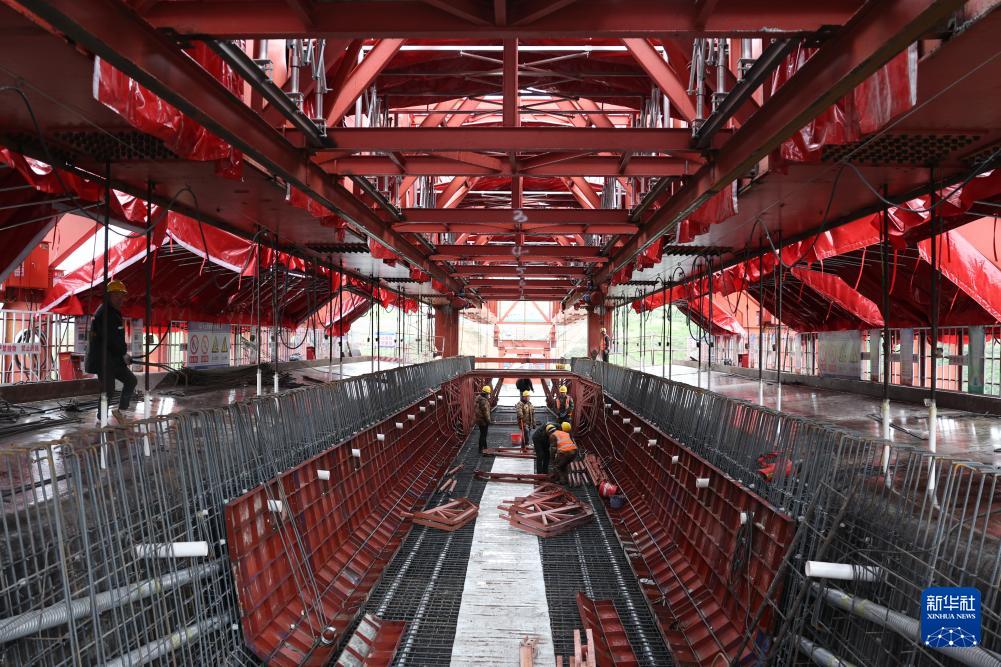 6月3日,中铁四局的建设者在西成铁路甘肃段白龙江大桥上施工作业。新华社记者 陈斌 摄