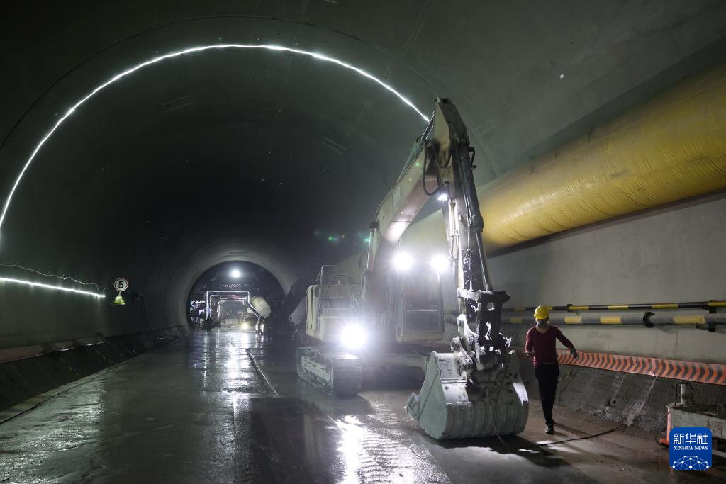 6月3日,中铁四局的建设者在西成铁路甘肃段格尔隧道内施工作业。新华社记者 陈斌 摄