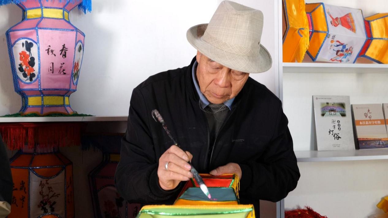 左右手并用剪纸,在“卍”字灯上绘制各类国画,用毛笔在灯面上题字.……陈永清老人几乎就是一位“全才”艺术家。