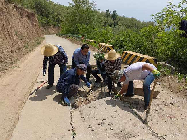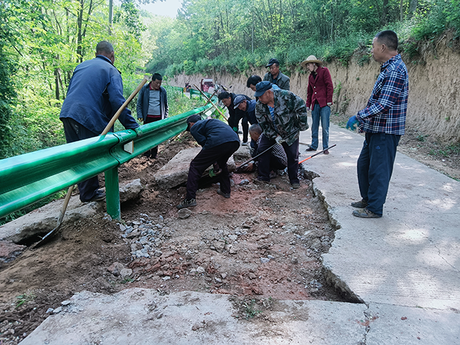在纸坊镇韩山村道路养护路段,数十名群众正手持撬棍、铁锹,对破损路面进行拆除修缮。“我们不仅要修复辖区破损道路,还要清理边沟水渠,对道路两边栽种马莲、清理杂草垃圾。目前已修缮破损坑洼道路5处,完成6公里道路的杂草清理和边沟疏浚工作。”韩山村党支部书记郭安然说。
