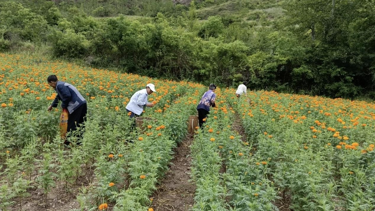 群众采摘万寿菊  台俊鹏 摄