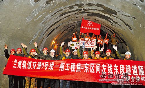 大西北网2月7日讯 2月6日,兰州轨道交通施工人员庆祝隧道贯通。当日,兰州轨道交通1号线一期工程焦家湾至东岗区间左线东段144米隧道顺利贯通,该区间双线暗挖隧道计划于7月前全部贯通。本报记者盛学卿 (责任编辑:鑫报)
