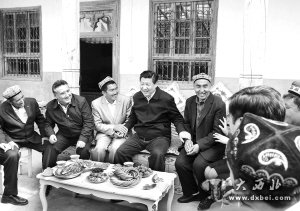 春天的新疆大地,万物复苏,生机盎然。4月27日至30日,习近平和中共中央政治局常委、全国政协主席俞正声,在中共中央政治局委员、新疆维吾尔自治区党委书记张春贤和自治区政府主席努尔·白克力陪同下,来到喀什和乌鲁木齐等地,深入乡村、企业、部队、学校、基层派出所、清真寺和新疆生产建设兵团,实地了解新疆经济社会发展情况,看望各族干部群众和部分长期在新疆工作的老同志,对做好新疆维护社会稳定、推进跨越式发展、保障和改善民生、促进民族团结、加强党的建设等工作进行指导。