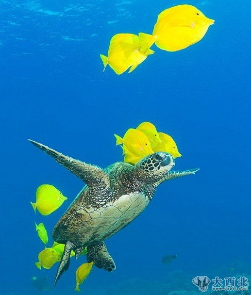 英国每日邮报报道,59岁的摄影师道格-伯莱因在美国夏威夷海域水下拍摄到了黃高鳍刺尾鱼为龟作清洁的过程,整个清洁过程持续了15分钟。
