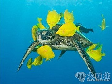 黃高鳍刺尾鱼为龟作清洁