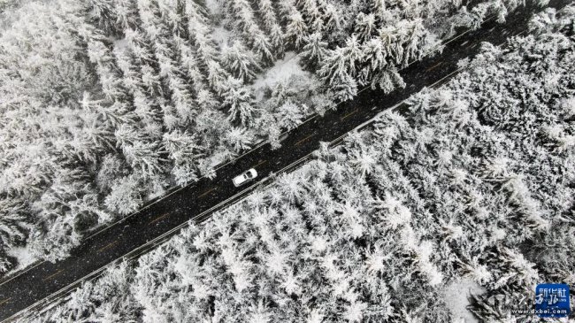 这是10月10日拍摄的甘肃省平凉市崆峒区南山生态公园雪景(无人机照片)。新华社发(吴希会 摄)