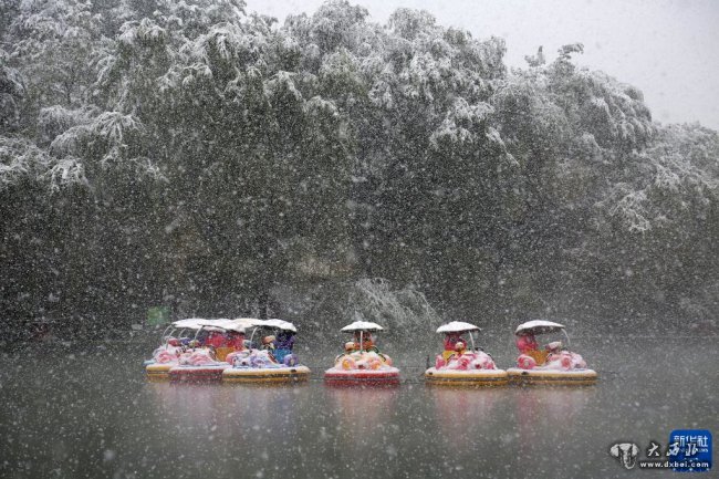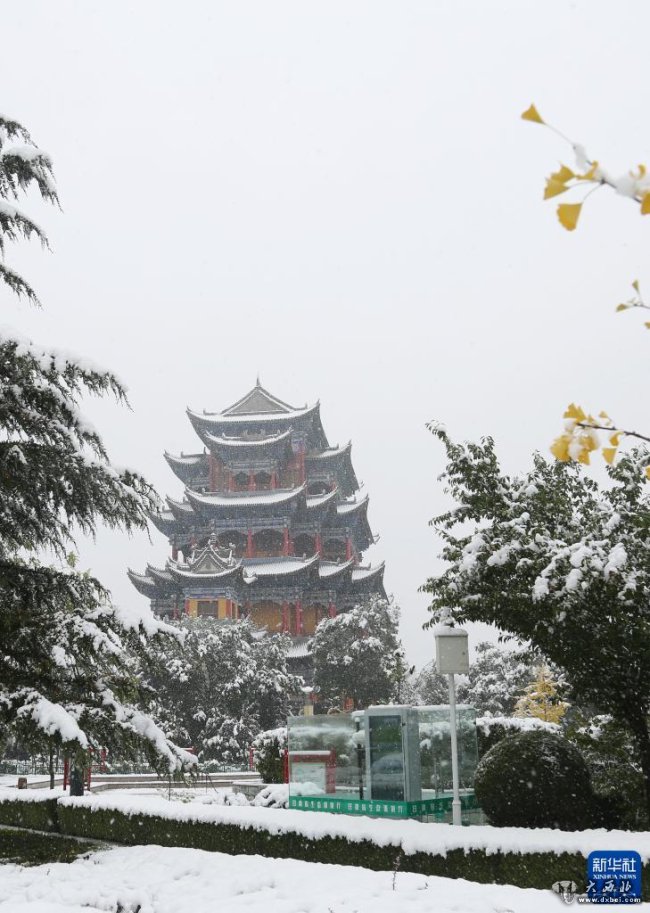 这是10月10日拍摄的甘肃省平凉市柳湖公园雪景。新华社发(吴希会 摄)