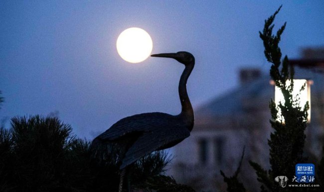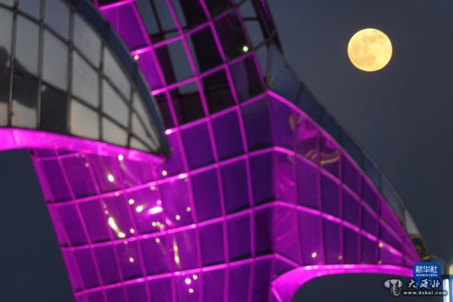 12月19日在山东省烟台市蓬莱区海市公园拍摄的满月。