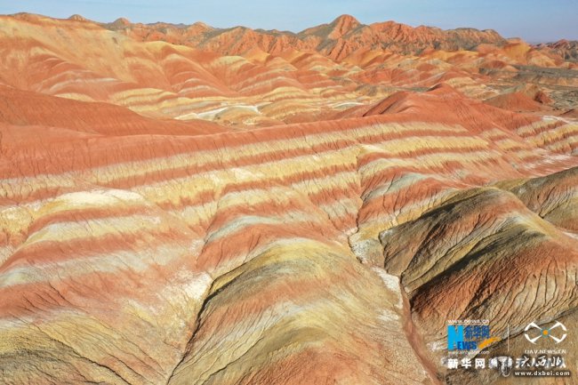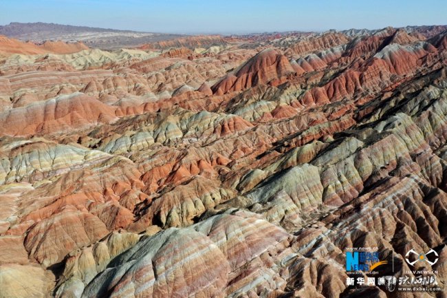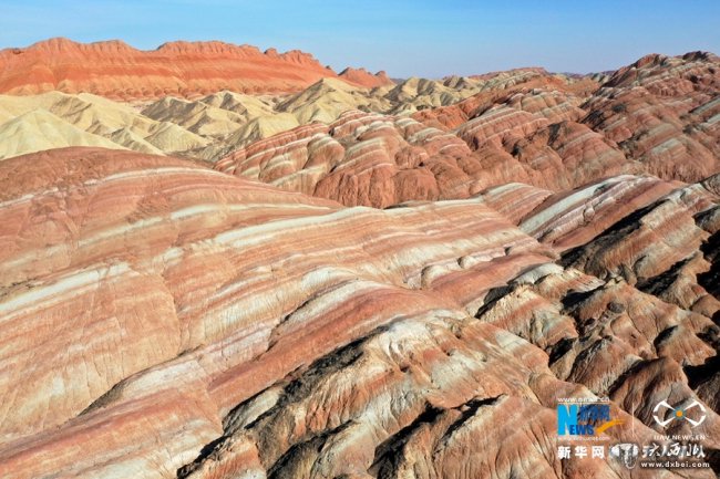 初春时节,位于甘肃省张掖市的七彩丹霞地貌,在阳光照耀下斑斓多姿,美不胜收。新华网发 (吴学珍 摄)