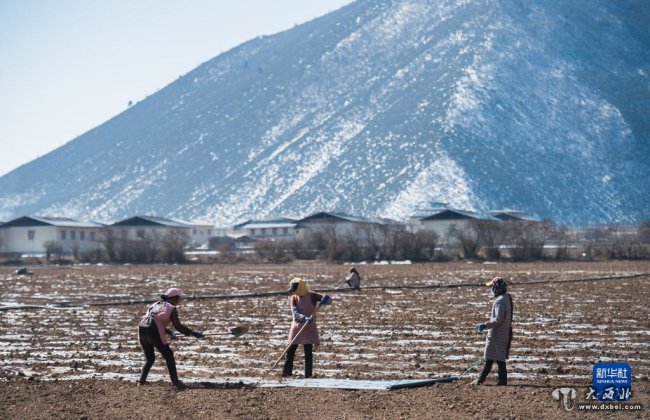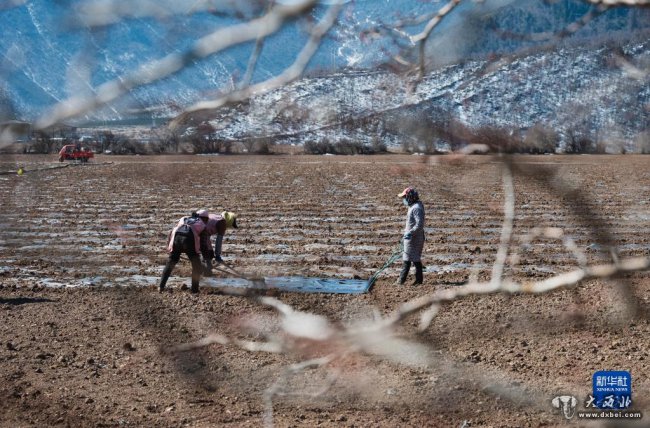 3月10日,云南省迪庆藏族自治州香格里拉市建塘镇的农民在田间劳作。
