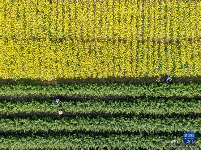3月15日,在江苏省淮安市洪泽区,农民在农田里劳作(无人机照片)。 新华社发(万震摄)