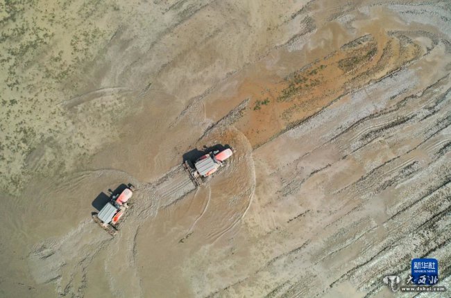 3月15日,农机手驾驶农机在四川省广安市广安区大安镇福城村翻耕稻田(无人机照片)。新华社发(张国盛摄)