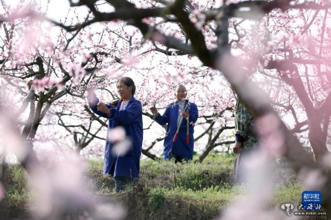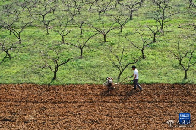 3月15日,村民在贵州省铜仁市玉屏侗族自治县朱家场镇混寨村果园里劳作。新华社发(刘德军摄)