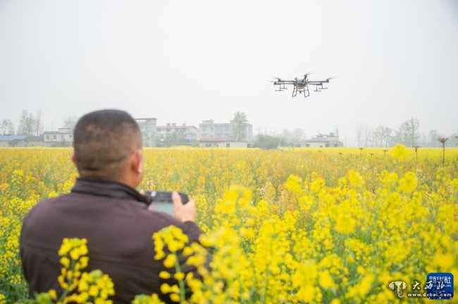 3月20日,在湖北省崇阳县青山镇的为民农机专业合作社,农民在田间操控无人机作业。 新华社发(伍志尊摄)