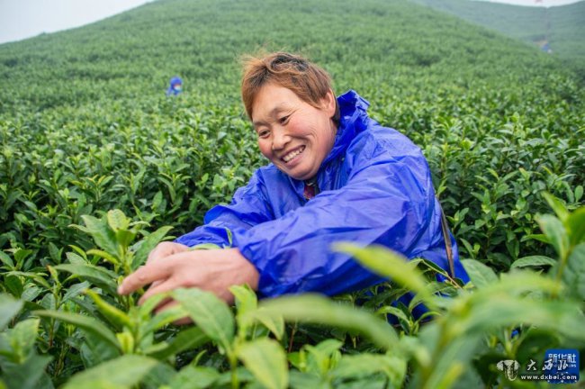 3月20日,在湖北省崇阳县青山镇的青岗白茶基地,工人在采摘茶叶。 新华社发(伍志尊摄)