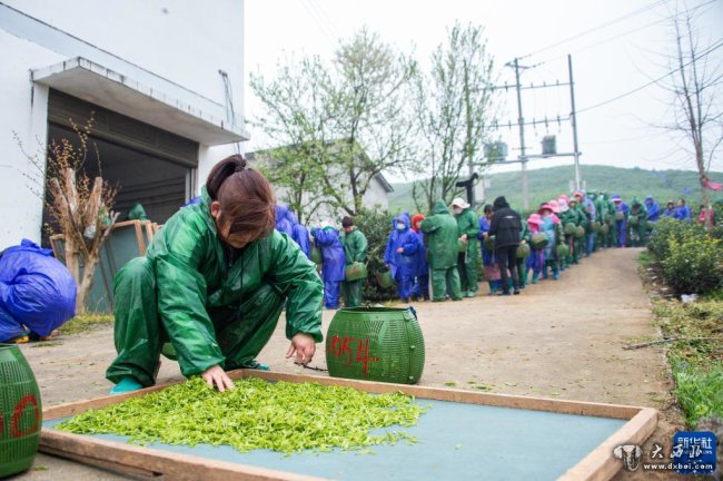 3月20日,在湖北省崇阳县青山镇的青岗白茶基地,工人在处理茶叶。 新华社发(伍志尊摄)