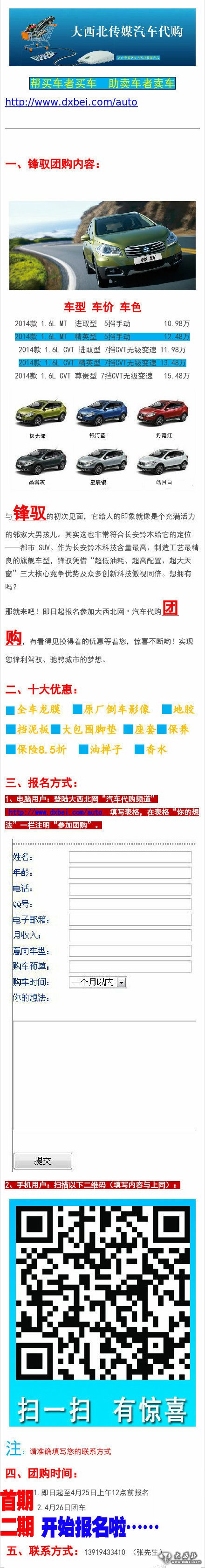 报名方式:电脑用户登陆大西北网汽车代购频道http://www.dxbei.com/auto/填写表格进行登记。