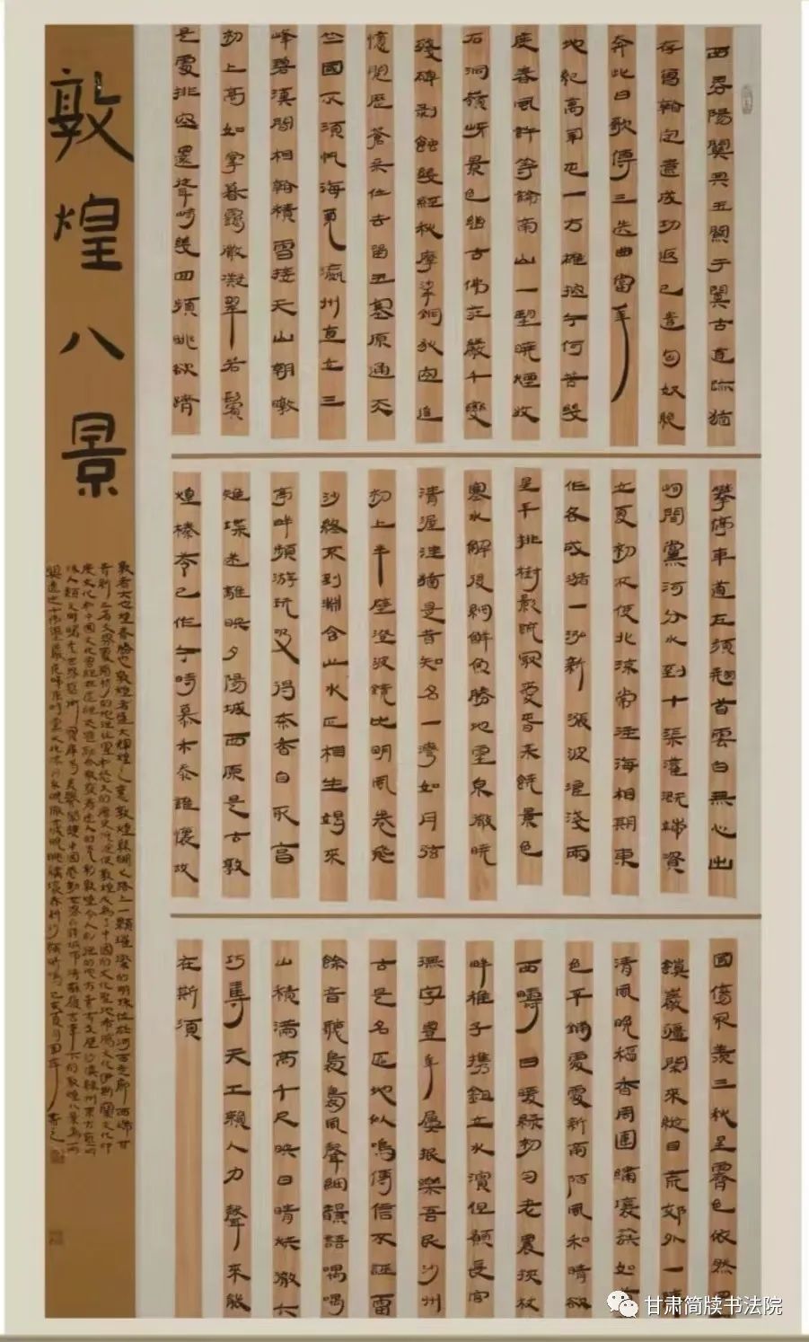 由甘肃简牍书法院组织专家对投稿作品进行评鉴,符合提名的作者将在简牍书法院公众平台以简牍书法名家专辑展形式推出。